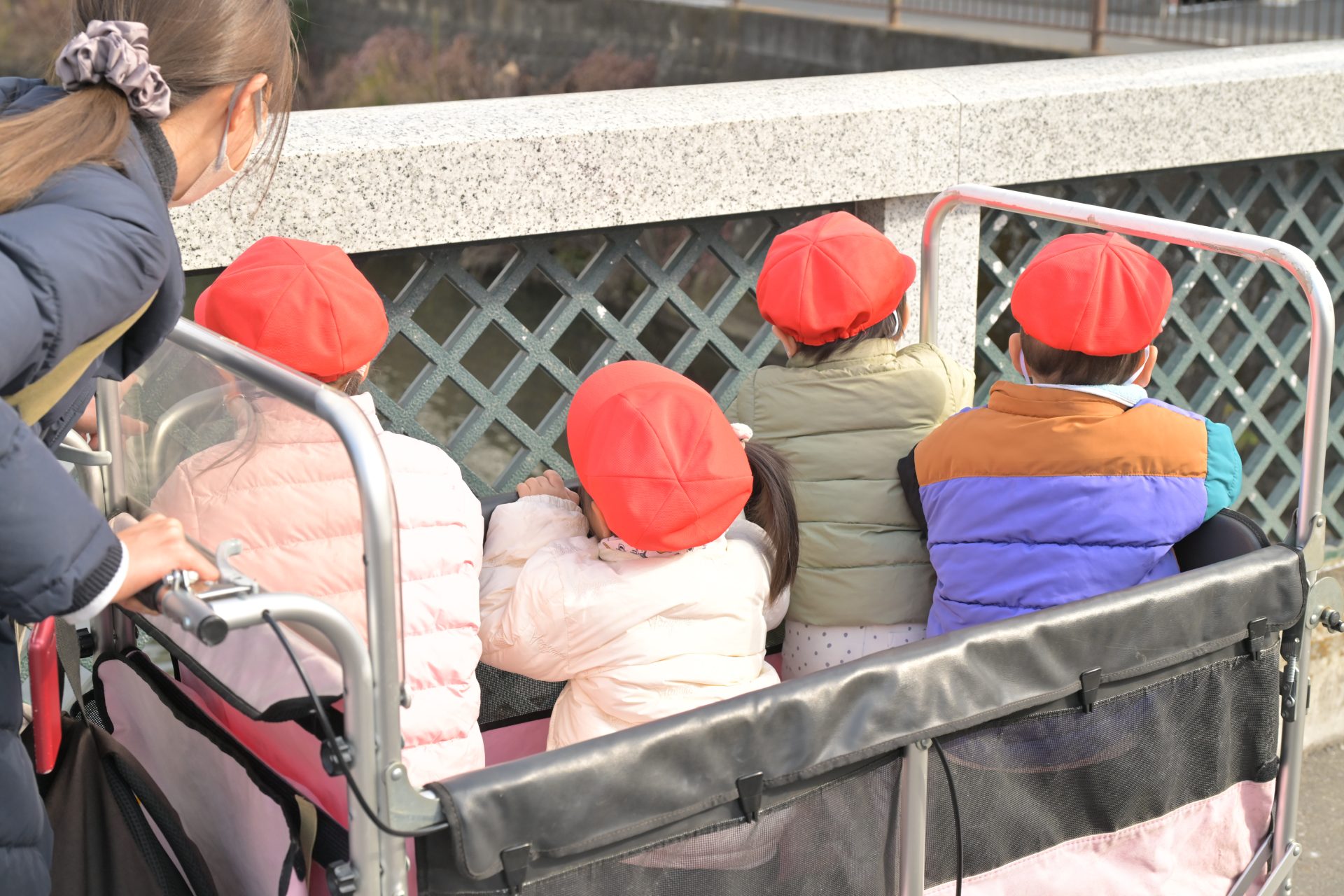 自転車は送迎時のみ、駐輪スペースはございません。短時間の駐輪の際は車の妨げにならないように園の建物に沿って駐輪していただき、長時間の駐輪はお控えいただいています。